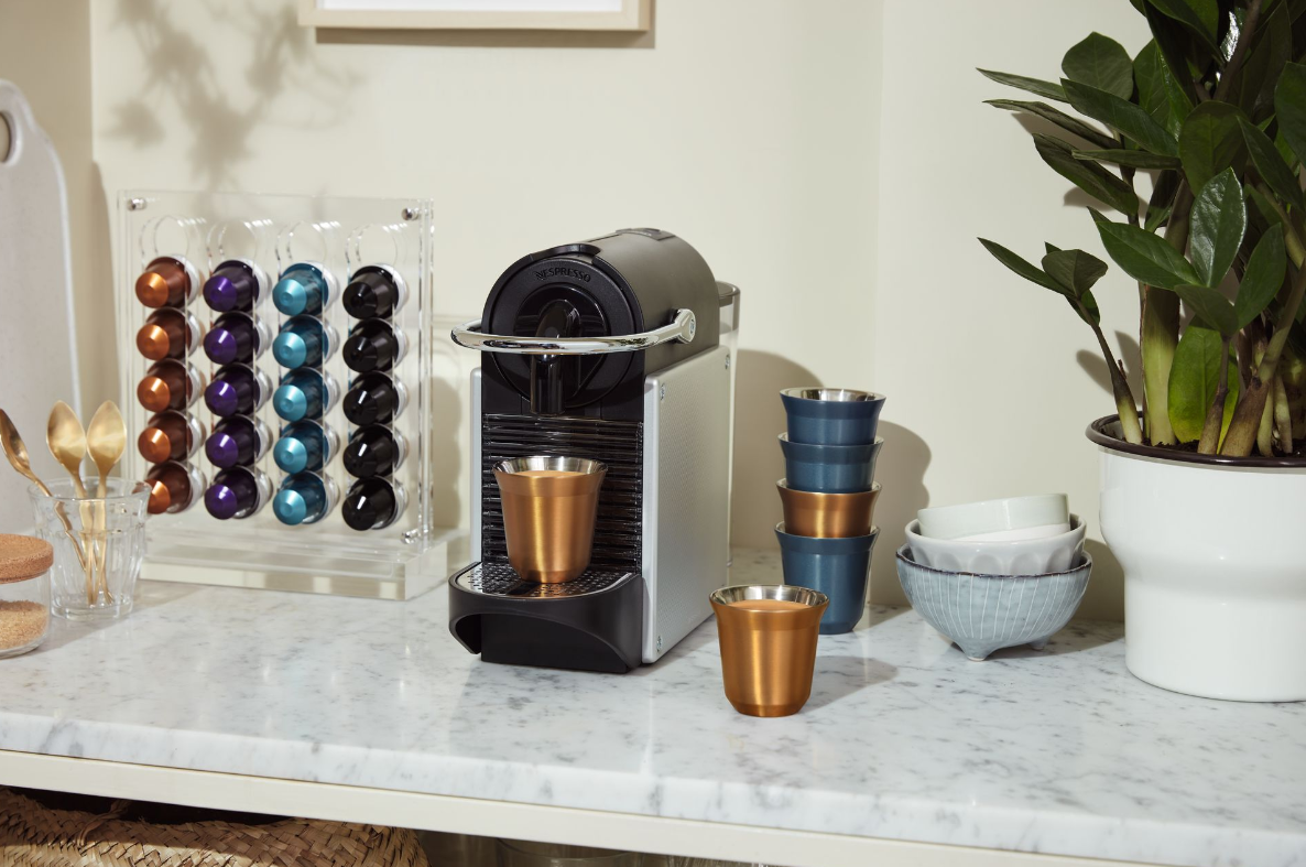 Компактен, прозрачен и удобен диспенсър за капсули, предназначен за лесно съхранение и подреждане на вашите любими капсули Nespresso (побира до 40 капсули, предлага се без капсули).