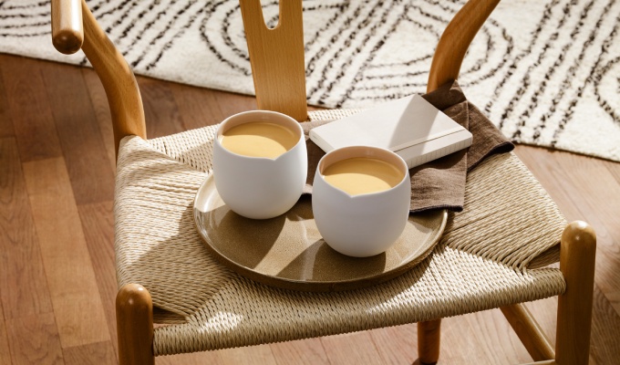 Двойна бяла порцеланова чаша, за да запази кафето ти топло.