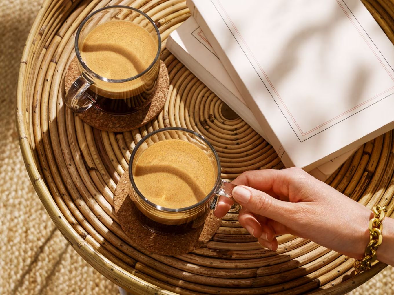Uljepšajte svoje trenutke uz kavu. Dolazi u dva komada, s dvije šalice i dvije žlice. Izrađene od kaljenog stakla i zaobljenih oblika, šalice će održati vašu kavu toplom i udobno ležati u ruci. Za trenutak uz kavu koji traje.
