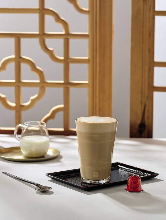 Добавете мляко към Shanghai Lungo, за да го превърнете във вкусно кремообразна чаша с много плодови и цитрусови нотки.