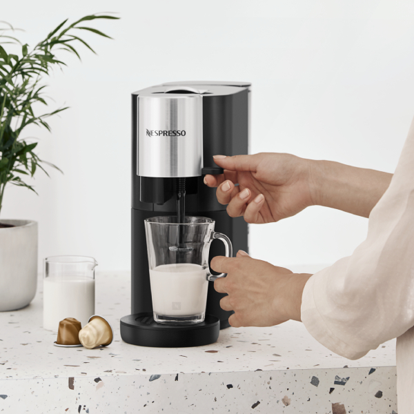 Направете го, оформете го, разбъркайте го по своя воля. С Nespresso Atelier вие сте майсторът на собствената си рецепта. Машината е вашата лична работна маса, с технология, която ви позволява да разпенвате всякакъв вид мляко - от краве до бадемово и соево... Позволява ви да приготвите всякаква рецепта, независимо дали предпочитате макиато, мока или дори флат уайт.