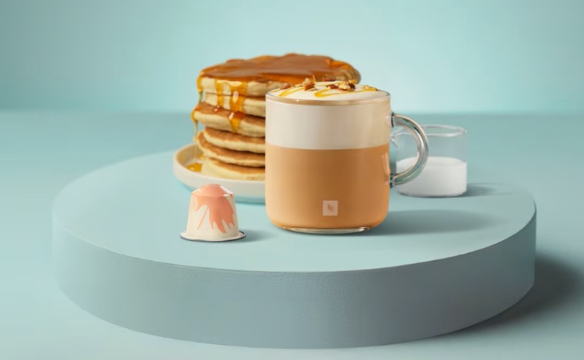 - Във вашата Vertuo Alto чаша сложете 8 кубчета лед (240 г), добавете 10 мл кленов сироп, след това 120 мл Бариста овесено мляко.
