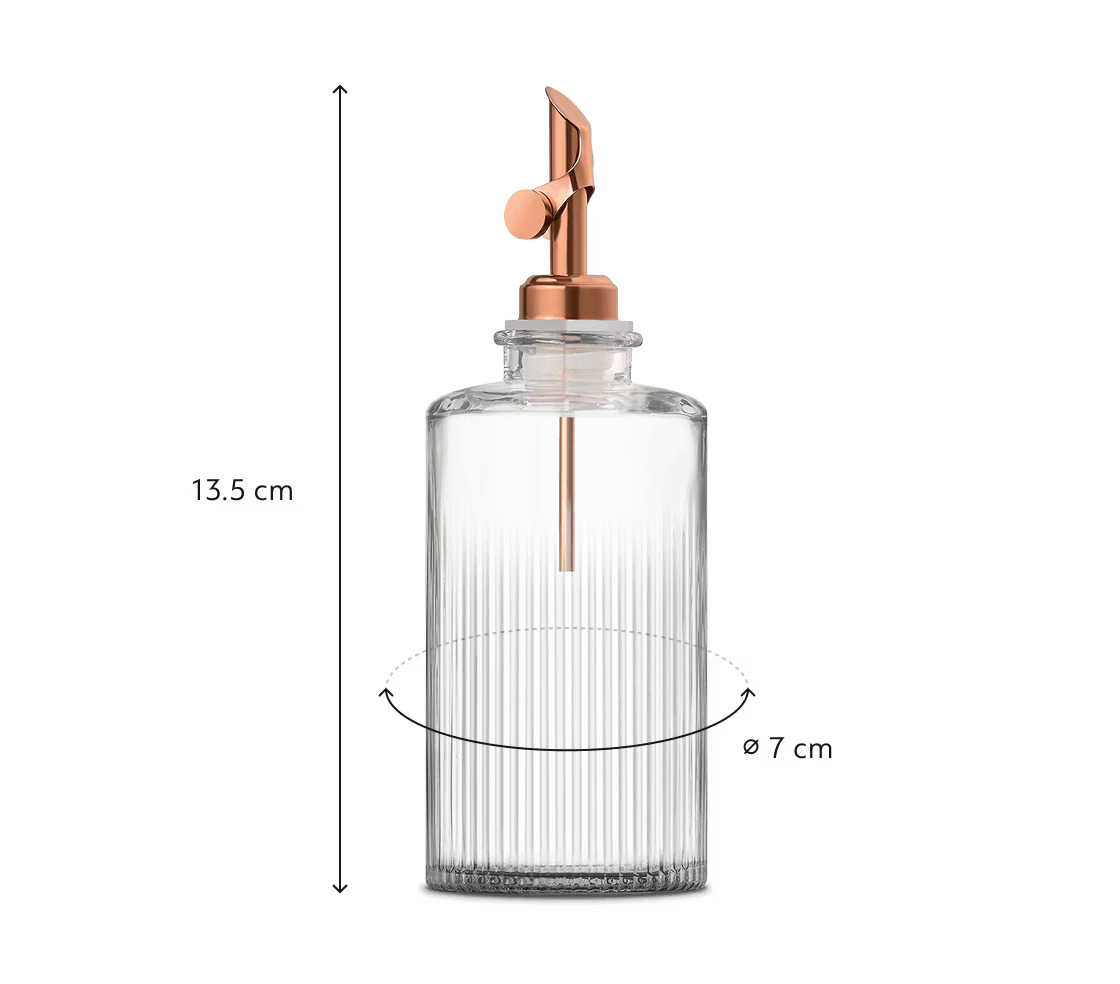 An essential addition to any recipe lover's collection, this syrup dispenser merges timeless design with modern artistry. The ribbed glass bottle adds a sleek touch to your coffee corner, while the copper-coloured spout blends function and style. A must-have classic for any barista!