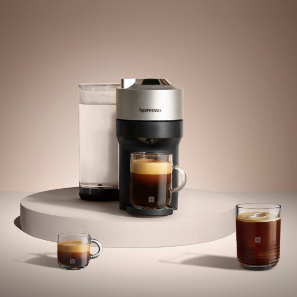 With its sleek design and elegant metallic finishing, Vertuo Pop+ makes a bold statement to match your style. With six cup sizes, simply choose your Vertuo capsule, pop it in, and you're away at the touch of a button. The Vertuo Pop+ has a large water tank (37.2 fl Oz / 1.1 L) accessible from the side. All in a compact design. For a coffee journey, with a Pop+.